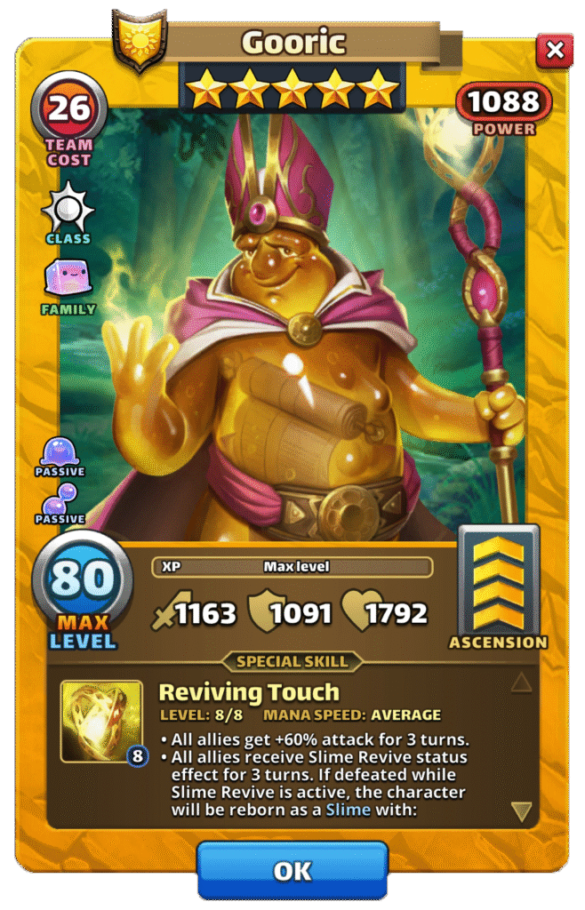 - Role: Healer | Reviver | DEF Buff (All damage reduced to 1)