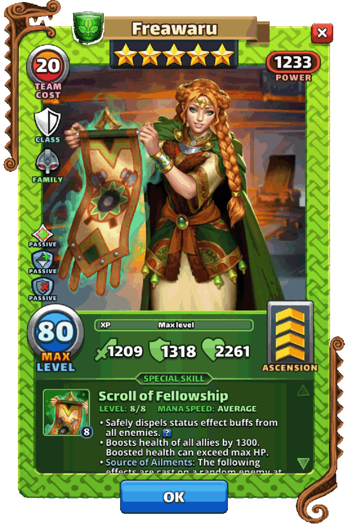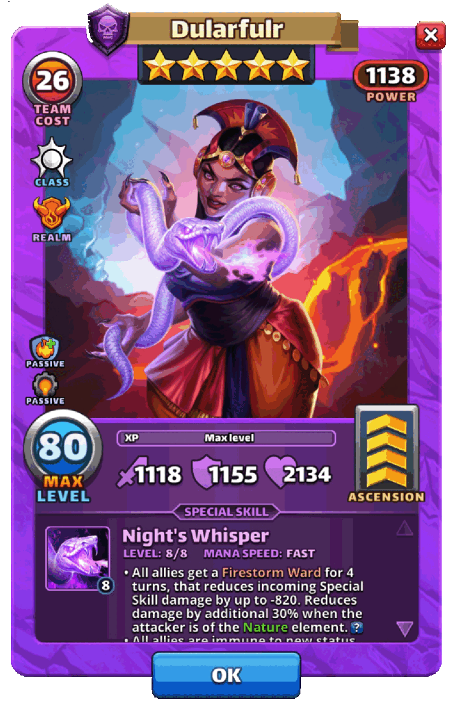 - Role: Healer | Firestorm Ward (Special Skill Damage Reduction) | Status Immunity
