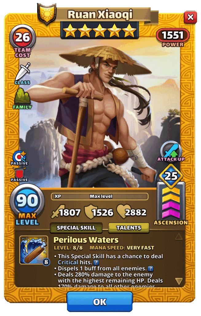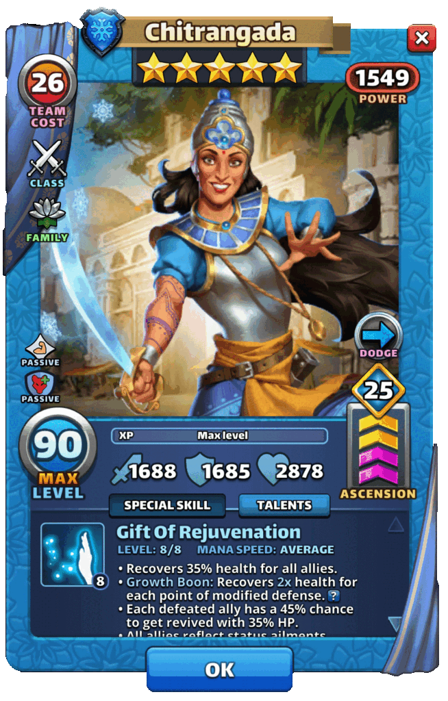 A brand-new entry, Chitrangada brings healing, revival, and cleansing all in one package. Her fast speed makes her instantly viable in many comps, especially in countering heavy debuff setups.