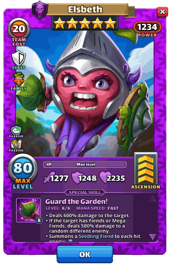 - Role: Seedling Fiend Summoner | Reaper | Buff Harvester | Counterattacker (110% reflect)