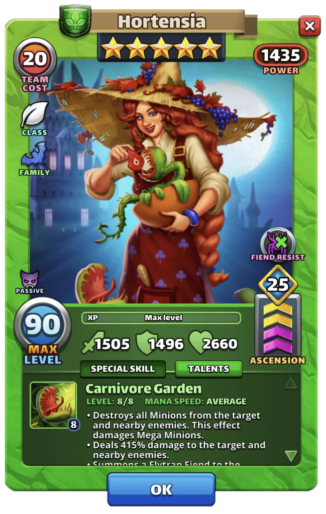 - Hortensia, Fosterer of Flytraps – Legendary Nature Druid, combining minion destruction, reaper effects, fiend casting, and healing debuffs.